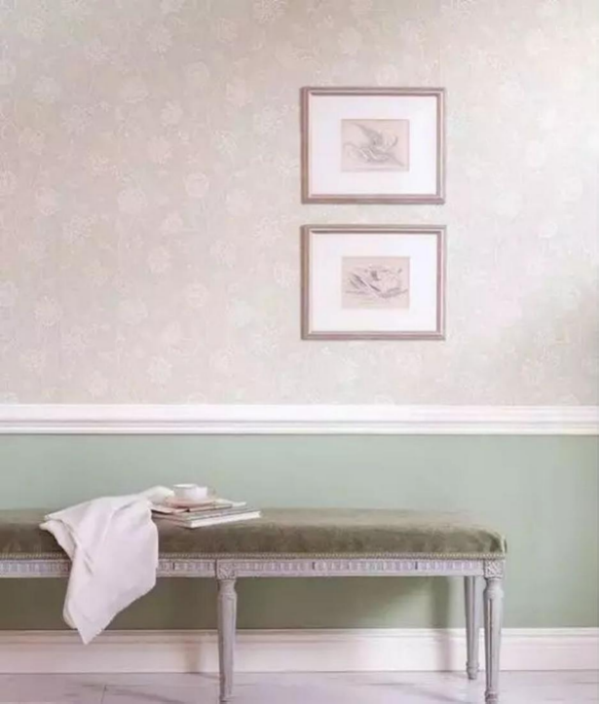 現(xiàn)在最常見的半墻設(shè)計是“上下半墻”,上下墻面為兩種不同的顏色,通常搭配為“白色+其他顏色”。