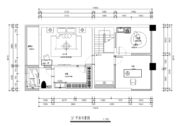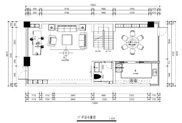 一樓布局為客廳、餐廳和廚房三大空間。