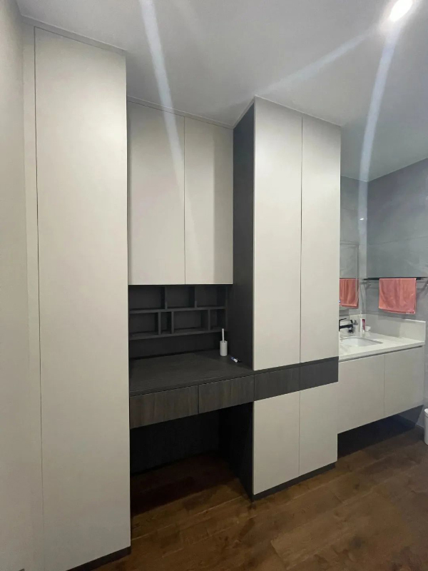 該項目是圣象家居全屋定制「驚鴻、羽翼和琥珀」三個系列的融合,采用鋅灰、米夏灰、原木色以及環保PET材質深鐵巖和淺鐵巖,打造了家居空間統一色彩與風格的全屋定制;同時,以合理的柜體結構和布局,形成超強的收納功能,打造整潔舒適的居室。