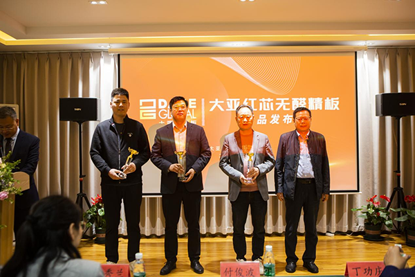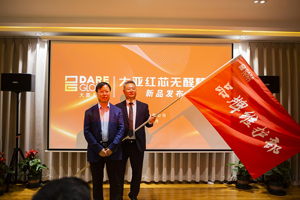 ??4月28日,大亞紅芯無醛精板新品發(fā)布會(huì)在大亞木業(yè)(江蘇)有限公司(即大亞人造板集團(tuán)宿遷生產(chǎn)基地)順利舉辦。大亞人造板集團(tuán)財(cái)務(wù)總經(jīng)理付俊波先生、研發(fā)中心總經(jīng)理陳秀蘭女士、運(yùn)營中心總經(jīng)理丁功慶先生、人造板集團(tuán)相關(guān)部門同仁及全國各地百名經(jīng)銷商代表蒞臨發(fā)布會(huì)現(xiàn)場。