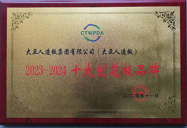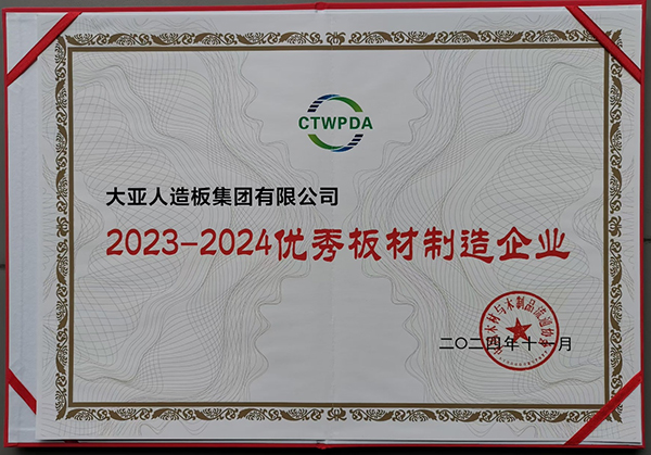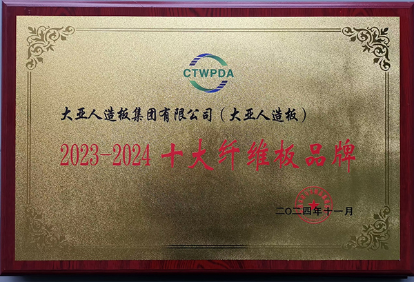 會議最后是頒獎環節,大亞人造板集團有限公司被評為“2023-2024板材優秀制造企業”,大亞人造板榮獲“中國板材國家品牌”、 “2023-2024十大纖維板品牌”和“2023-2024十大刨花板品牌”等獎項。