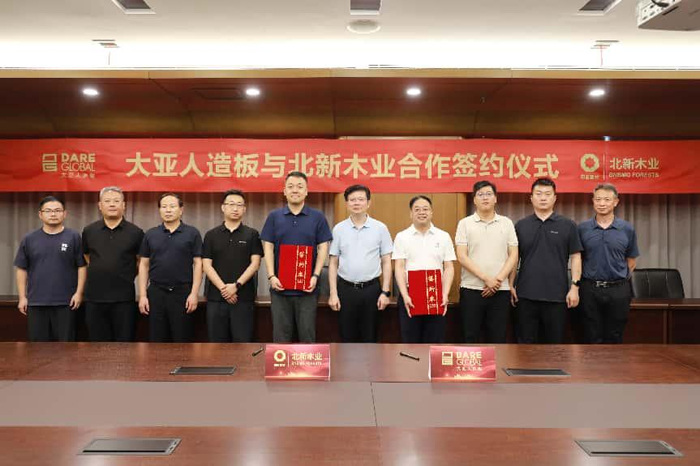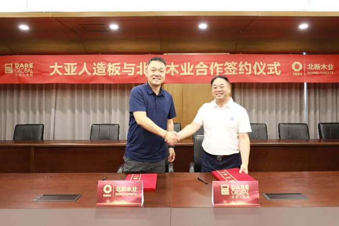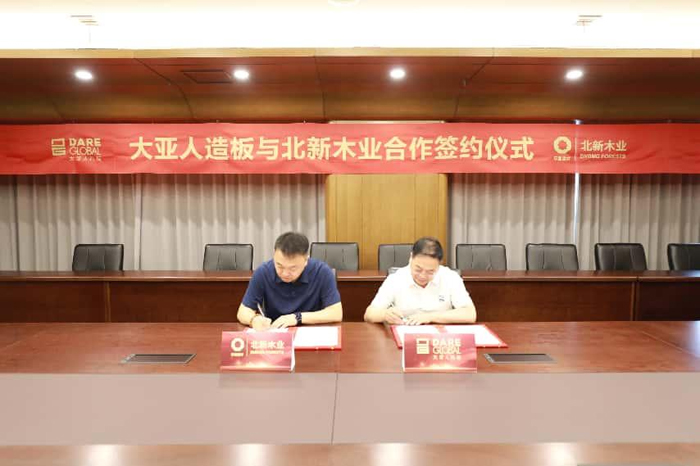 2025年6月30日,大亞人造板與央企北新木業(yè)在大亞人造板集團(tuán)有限公司總部正式簽署了竹香板戰(zhàn)略協(xié)議。雙方將聚焦竹香板研發(fā)、生產(chǎn)與市場(chǎng)推廣,共同打造綠色低碳家居新標(biāo)桿。此次合作標(biāo)志著中國(guó)板材行業(yè)在“雙碳”戰(zhàn)略下邁出關(guān)鍵一步,為環(huán)保板材市場(chǎng)注入新動(dòng)能。